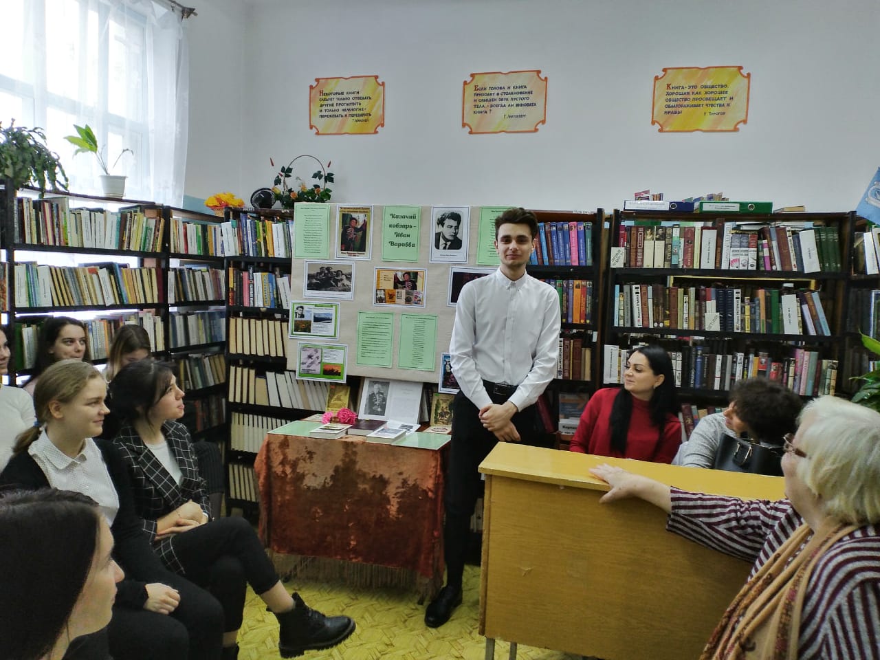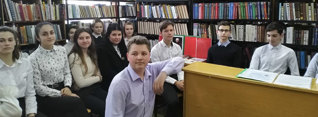 5 февраля в рамках Года памяти и славы учащиеся 10-х классов приняли участие в заседании краеведческого клуба "Казачий курень" на базе городской библиотеки # 1. Тема заседания - "Казачий кобзарь Иван Варавва".