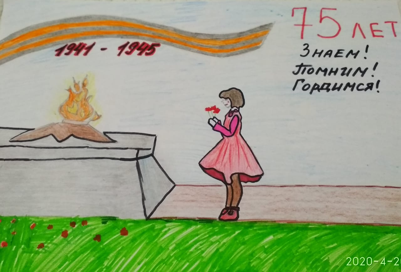 Плещенко Мария-7-Г 20 апреля старт конкурса рисунков "Помним!Гордимся!Чтим!" к 75-летию Победы. Присоединяйтесь!