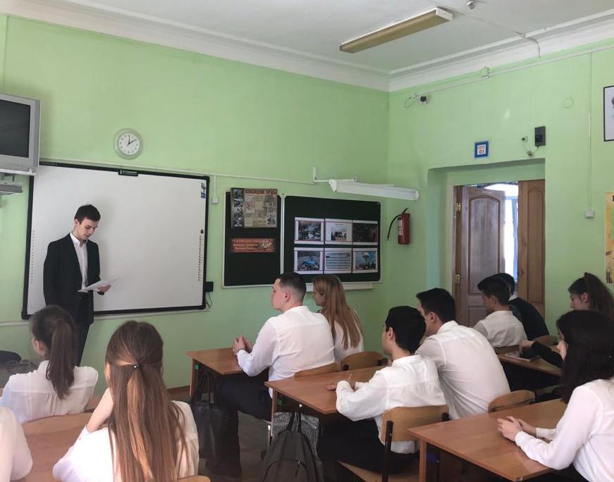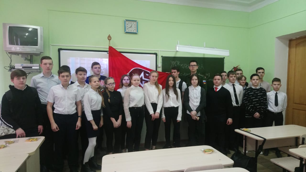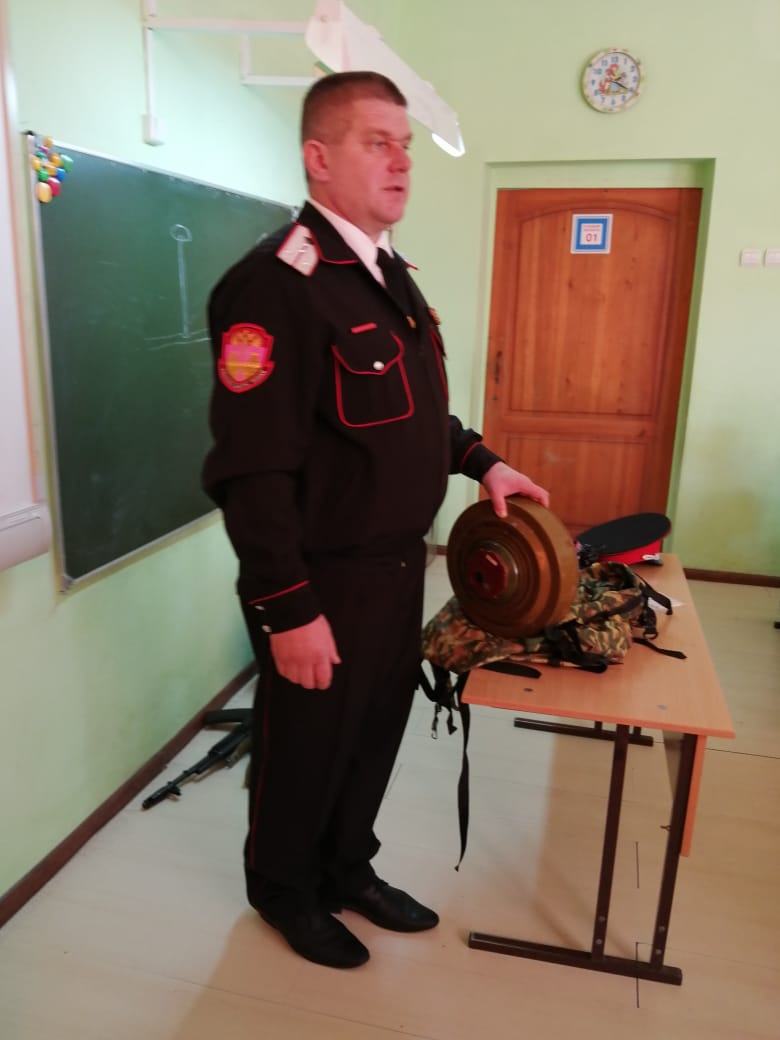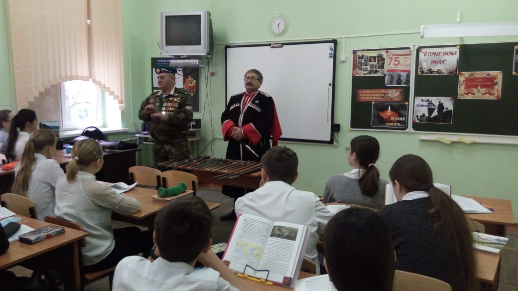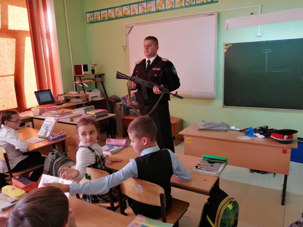 17 февраля прошел Урок мужества в 3-В классе. Атаман Бакинского казачьего общества Даценко С.Ю. рассказал о службе в Вооруженных Силах РФ, показал образцы оружия.