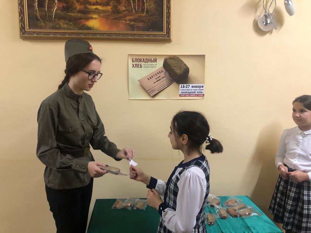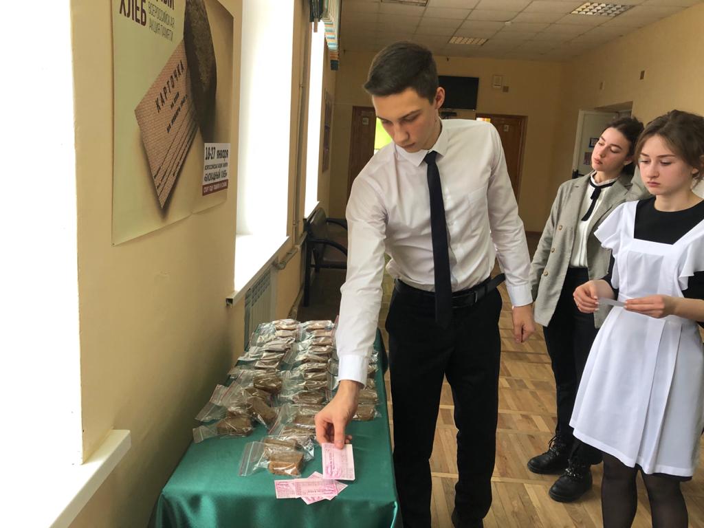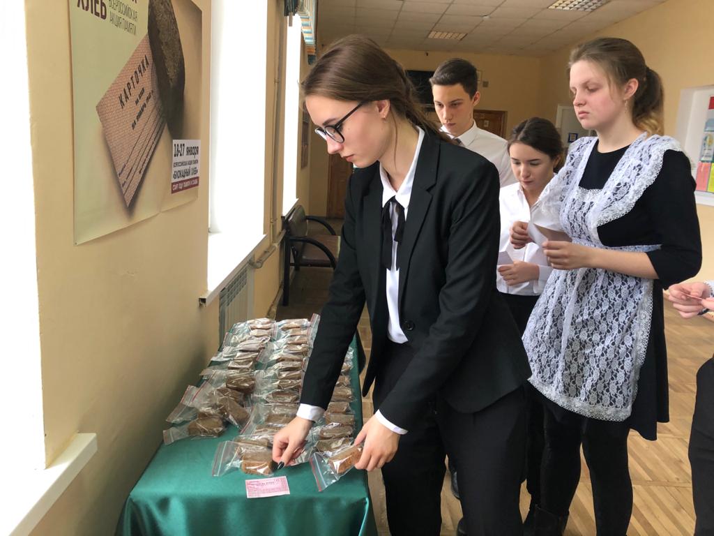 8 января в рамках Всероссийской акции памяти "Блокадный хлеб" учащиеся 11-х классов приняли участие в конференции "Война. Блокада. Ленинград". В ходе конференции ребята получили символический талон, который потом обменяли на кусочек хлеба.