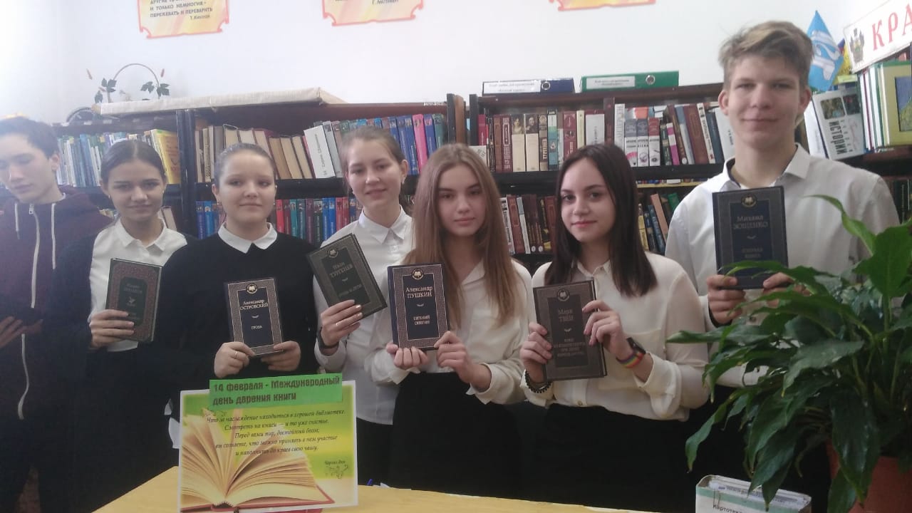 14 февраля в Международный день дарения книги учащиеся 9-В класса подарили городской библиотеке # 2 комплект книг. Дарить добро - это в нашей власти!