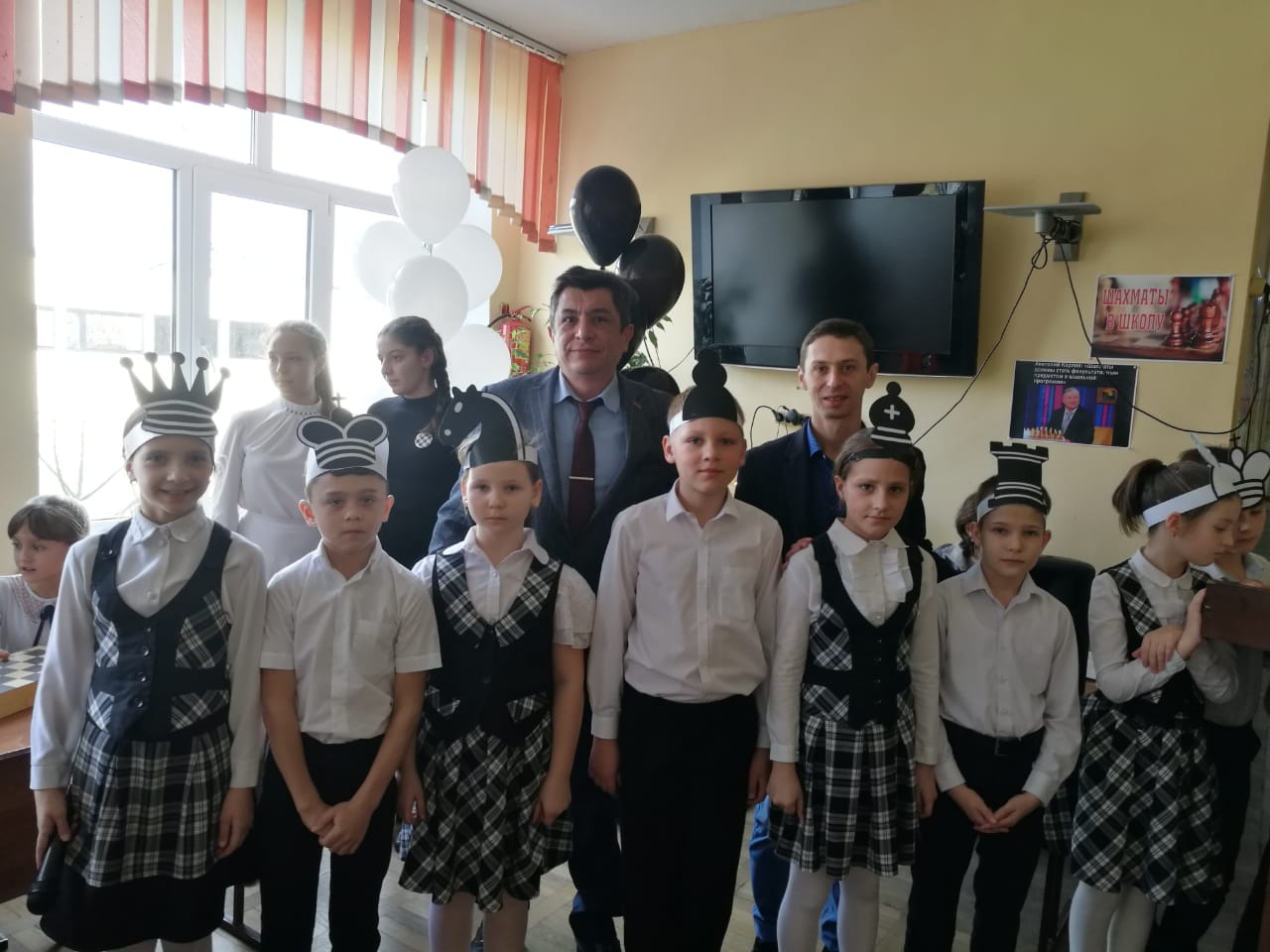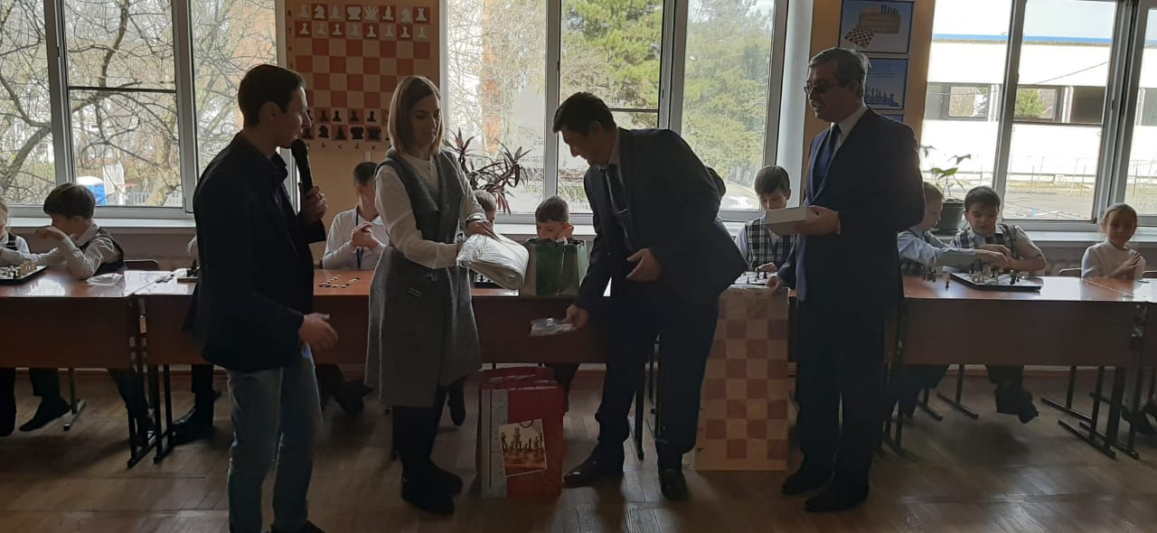 27 февраля в школе прошла игра-путешествие "В страну шахматных фигур" в рамках проекта "Шахматы в школу". Почетными гостями стали представитель организации " Федерация шахмат Краснодарского края " Грушев В.С. и президент организации "Федерация шахмат города Горячий Ключ" Аллахвердов Д.А. Они подарили школе 10 наборов шахмат, 5 часов, 1 магнитную шахматную доску. После игры гости провели сеанс одновременной игры с 20 учащимися школы. Лучшими шахматистами признаны:Олькина В.,Покровский Н.,Зеленко А.,Акопян Н., Андреев К., Толкачев Л.