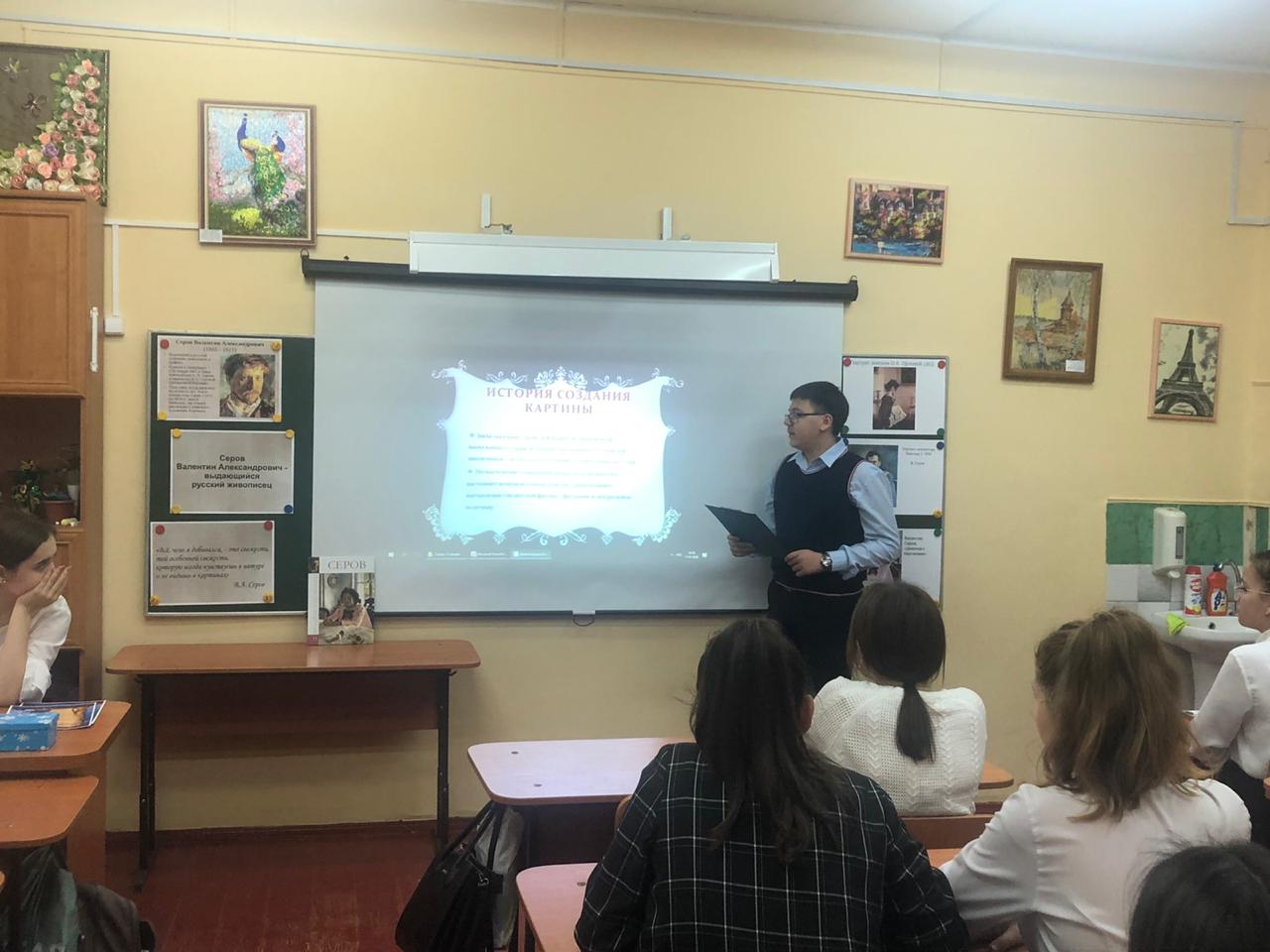 Час искусства по теме "Великий русский художник Валентин Серов" провела на базе школы сотрудник городской библиотеки # 1 Лаврова Е.Е.