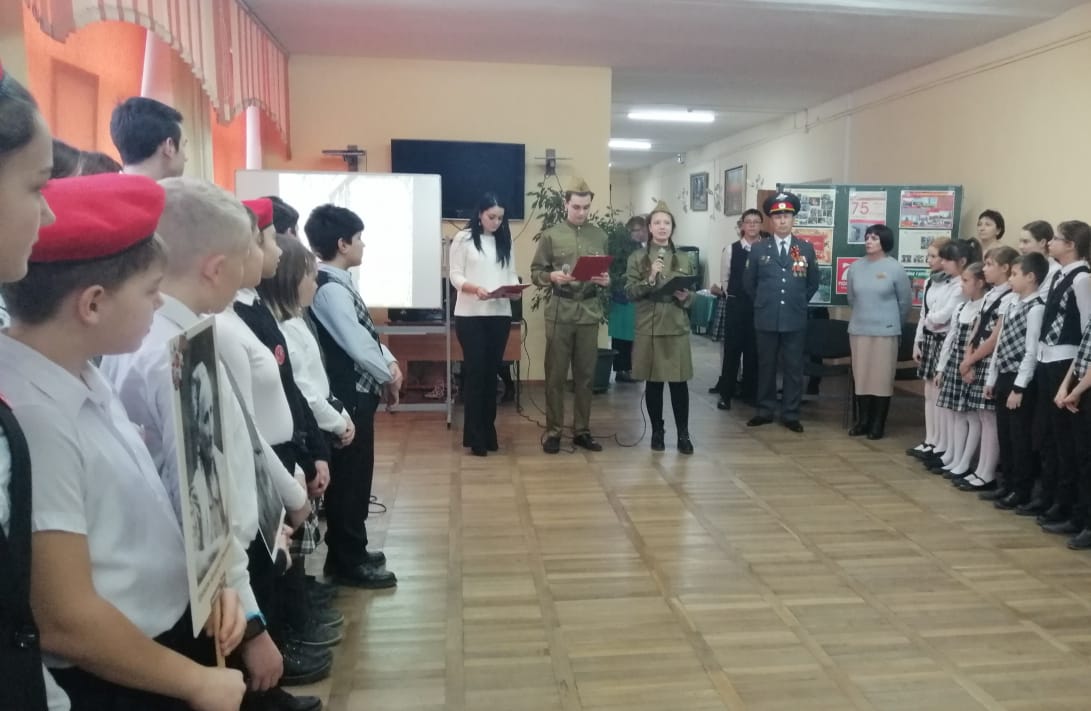 23 января в школе прошла Торжественная линейка, посвященная старту Года Памяти и Славы. В ходе линейки напутственное слово ребятам дал Н.Ю.Мешвез, майор МВД в отставке. На линейке каждому классу было вручено задание патриотической направленности. Каждый класс пришел на линейку с портретом Героя. После линейки ребята получили 125 грамм хлеба - символа акции "Блокадный хлеб". На линейке присутствовала главный специалист управления образования Огурцова Т.Н.