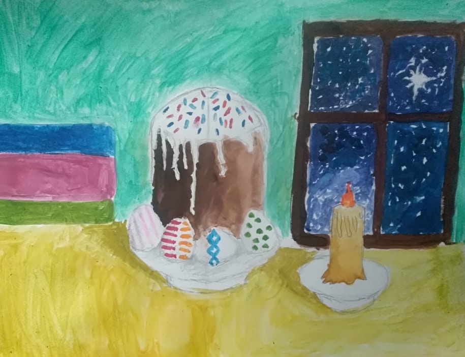 Беджанян Артем-3-Б 18 апреля. Учащиеся школы приняли участие в конкурсе рисунков "Пасха в кубанской семье"