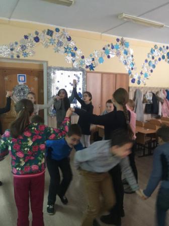 9 января в дни зимних каникул учащиеся 4-А и 4-В классов провели час общения "Народные игры на Святки": хороводы, гадания, поздравления.
