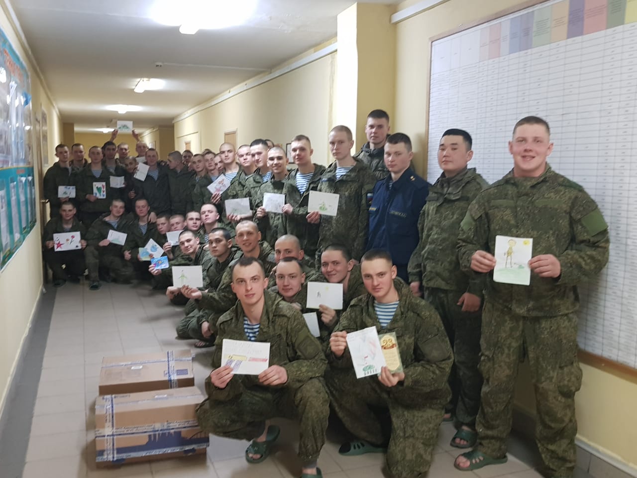 21 февраля разведчикам 10-й бригады воинской части п. Молькин были вручены посылки со сладостями, предметами личной гигиены, поздравительными открытками, собранными учащимися школы во время благотворительной акции "Подарок воину ВС РФ".
