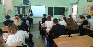 6.04.2018г. В рамках профориентационной работы учащиеся 11-х классов встречались с представителями института им. Плеханова, познакомились с бизнес проектом «Капитаны».