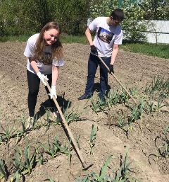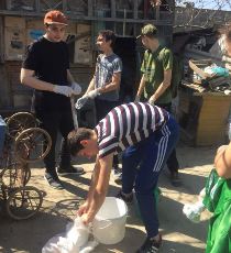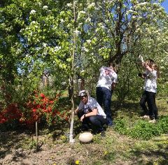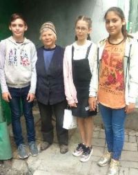 11.04.2018г. Волонтеры нашей школы «Синяя птица» оказали помощь ветерану Сердюк Г.А.: побелили деревья, посадили кукурузу.