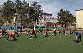 18.04.2018г. «Зарядку с чемпионом» с учениками нашей школы провел капитан сборной команды города по футболу Савченко В.П.