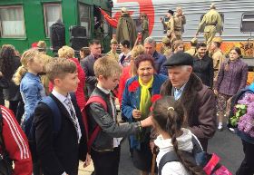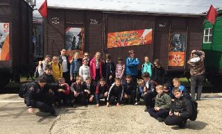 21.04.2018г. 20 апреля ученики 5А класса вместе с жителями г. Горячий Ключ встречали ретропоезд «Победа».