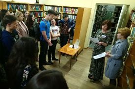 11.05.2018г. «Судьба казака – летописца», под таким названием прошел исторический час в городской библиотеке №1. Учащиеся 9-В класса познакомились с творчеством Знаменского, приняли участие в викторине.