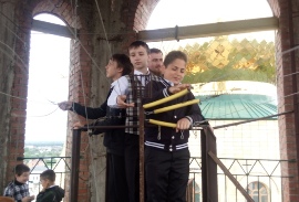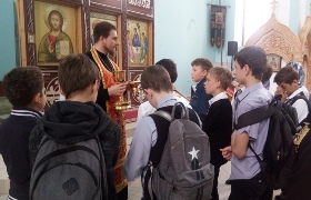 19.04.2018г. Учащиеся 4В и 5Г классов приняли участие в экскурсии «Пасхальный звон» в Свято – Троицкий храм. Ребята познакомились с традициями праздника Святой Пасхи, увидели фотографии первых храмов родного города, побывали на колокольне. На экскурсии было очень интересно и познавательно.